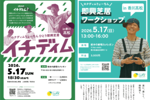 | イーズスケッチ第4期WS 7:00 pm イーズスケッチ第4期WS 4月 14 @ 7:00 pm – 9:30 pm ![]() 【イーズスケッチ 第4期募集 & 第3期ショーイングのお知らせ】 ロクディムりょーちんの即興芝居ワークショップ 「イーズスケッチ」 4月からの第4期の募集と、 現在行っている第3期のショーイング(発表会)のお知らせです。 ⸻ まずは、ショーイングのご案内です。 今、この相手と、この場だからこそ思うこと、感じること。 そのひとつひとつを大切にしながら、相手とシーンを立ち上げていきます。 即興でシーンを演じるって、どんな感じなんだろう? どんな時間が流れているのかな? そんな気持ちで、どうぞ気軽に覗きにいらしてください。 🗓 4月7日(火) 19:30 発表スタート 20:30 終了 20:30〜21:30 振り返り(希望者のみ) 📍 世田谷区内施設 ※お申込みいただいた方に詳細をご案内します 📩 お申し込み りょーちん宛メッセージで。 「行きます」と一言でも大丈夫です。 ⸻ そして、4月14日から イーズスケッチ第4期がスタートします。 今回のテーマは 「解像度 × 表現力」 即興で「今」を演じる。 その瞬間を、もっと具体的に、もっと解像度高く。 これまで大切にしてきた 「自分であること」「今を感じること」を土台にしながら、 そこからもう一歩先へ進むワークをしていきます。 ただ感じるだけで終わらせるのではなく、 それをどう表現し、どう使っていくのか。 シンプルだけど密度の高い時間の中で、 シーンの見え方や、自分の表現を深めていきます。 🗓 第4期 開催概要 ・期間:4月14日(火)〜7月21日(火)/全10回 (4月28日、5月5日、5月19日、6月16日、7月14日はお休み) ・時間:19:00〜21:30 ・会場:世田谷区内施設 ・定員:6名程度 💰 参加費 ・1回参加:3,000円 ・全回参加:30,000円 ・全回早割:25,000円(4/7まで) 📩 お申し込み https://forms.gle/EtPBSbXRZNmoHoFx6 ⸻ 「即興って、こんなに興味深いんだ」 「自分を使うって、こういうことかもしれない」 まずはショーイングでその時間を感じていただいて、 もしよければ、第4期でご一緒できたら嬉しいです。 #即興 #インプロ #芝居 #ワークショップ #東京 | イーズスケッチオンラインWS第3期 8:00 pm イーズスケッチオンラインWS第3期 4月 16 @ 8:00 pm – 10:00 pm ![]() 🗓 開催概要 ・期間:2月12日(木)〜4月23日(木)/全10回 (3月26日火曜はお休み) ・曜日:毎週木曜 ・時間:20:00〜22:00 ・回数:全10回(最終回はショーイング) ・形式:オンライン(Zoom) ※お申込みいただいた方に、参加用URLなどの詳細をお送りします。 ⸻ 💰 参加費 ・1回参加:2,500円 ・全回参加:22,500円 ・全回早割:20,000円(※2月5日まで) ⸻ 🌱 こんな方におすすめです ・即興や表現に興味がある ・自分の気持ちを大切にしたい ・人と関わることを、もう少し楽にしたい ・オンラインで、安心して表現できる場を探している ・画面越しでも「ちゃんとした時間」を味わいたい ⸻ 💬 お申し込み・お問い合わせ 申込フォーム https://forms.gle/vRCWcm3aGCjAsurq5 または りょーちん宛に直接メッセージでどうぞ。 | 60分オンラインWS 8:00 pm 60分オンラインWS 4月 17 @ 8:00 pm – 9:00 pm ![]() こんな方におすすめです ・気づくと、いつも相手に合わせてしまう ・自分の本音が分からなくなることがある ・疲れているけど、何に疲れているのか分からない ・長時間のワークショップはハードルが高い ・まずは短い時間で、自分と向き合ってみたい ⸻ このワークショップの特徴 ・単発参加OK(継続しなくても大丈夫) ・60分だから、生活の中に差し込める ・今の状態のまま参加できます ・少人数(各回4名)でゆっくり進めます これは「学ぶ場」ではありません。 自分を置き去りにしないための、 小さな実践の時間です。 静かだけれど、確かな一歩です。 ⸻ 開催日程 ・4月6日(月)20:00〜21:00 ・4月17日(金)20:00〜21:00 ・4月24日(金)20:00〜21:00 ※必要なタイミングで是非ご参加ください ※5月以降も定期開催予定 ⸻ 定員 各回4名 ⸻ 参加費 3,000円 この60分を、 自分のために“確保する”時間として使ってみてください。 ⸻ 申込方法 Googleフォームよりお申し込みください https://forms.gle/TQ84FXRN3wtvHCvE7 | ||||