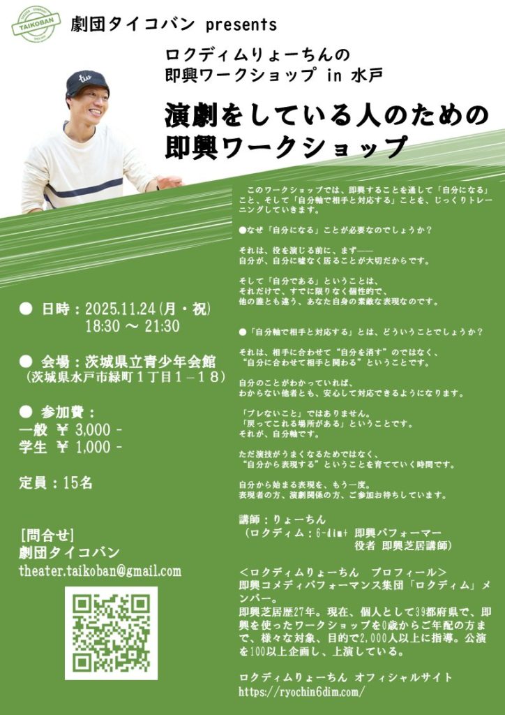 ロクディムりょーちんの『演劇をする人のための即興ワークショップ』in 水戸